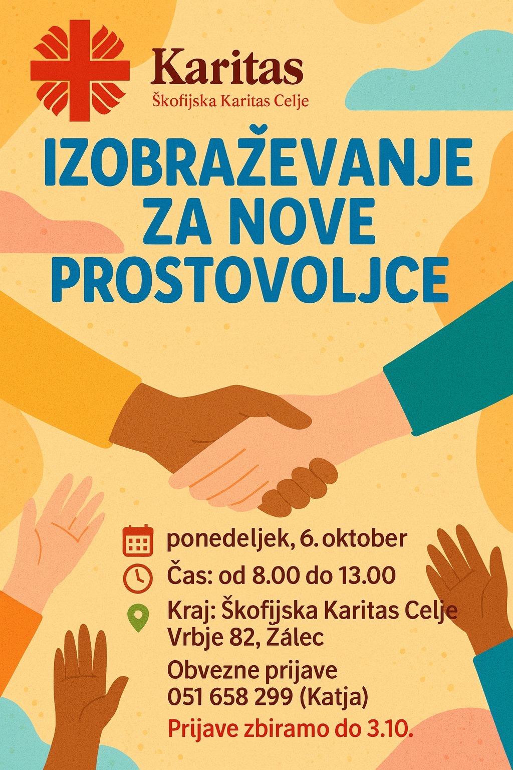 Želiš postati prostovoljec? Želiš postati del naše skupnosti? Pridruži se nam!Vsi, ki ste se že odločili za ta korak in za vse, ki še o tem razmišljate, vas vabimo na IZOBRAŽEVANJE ZA PROSTOVOLJCE. Prijave sprejemamo do petka, 03. 10. 2025, do 10.00, na 051 658 299 (Katja).—Dejavnost razdeljevanja hrane in izvajanja spremljevalnih ukrepov je financirana